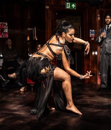 Resident dancer at London's regular belly dance event.